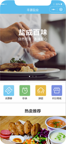 公司为餐饮盐业小程序,特别针对盐业行业特点而设计,为您提供高品质效果呈现与电商化技术服务